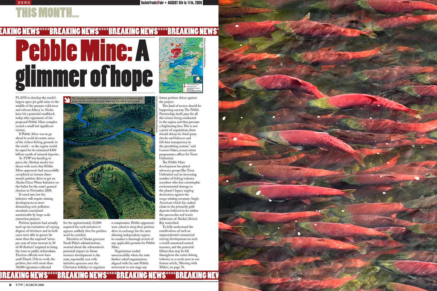 The watershed of Bristol Bay, Alaska – arguably the world’s greatest wild salmon and trout fishery – is considered by anglers and industry types alike to be the crown jewel of the sport due to its sheer opulence of game fish and the spectacular wildness of its environment. Sadly, inconceivably, all of this is now threatened by a gold mining scheme of unprecedented size…